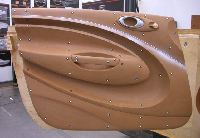 Abb: Fahrzeugtür aus Plastilin (Clay) mit Referenzmarken fürs 3-D Scannen